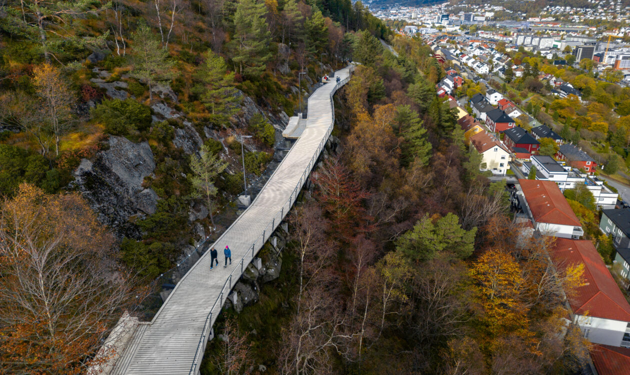 Etableringen av den totalt 7,6 kilometer lange turveien var en viktig del av Bergen kommunes strategi for å integrere natur i det urbane landskapet og tilrettelegge for helse, trivsel og samhørighet. Sweco har på oppdrag fra Bymiljøetaten prosjektert den fjerde og siste etappen. Dette inkluderer blant annet en nesten 400 meter lang, spektakulær brokonstruksjon som bukter seg rundt fjellsiden.