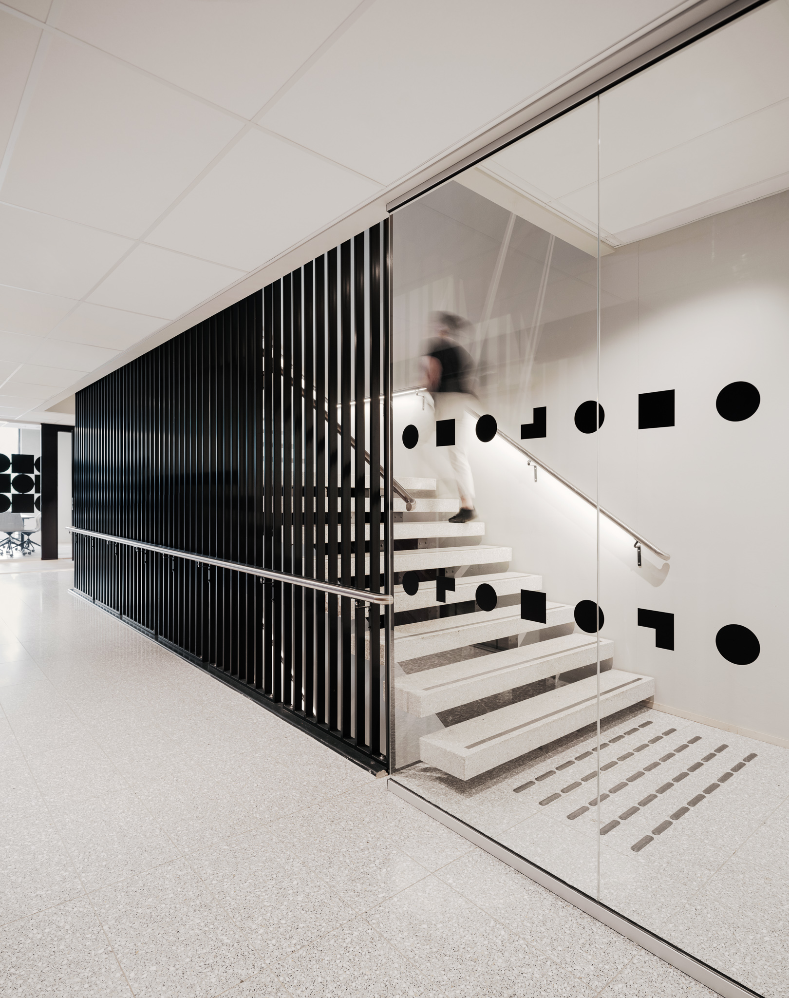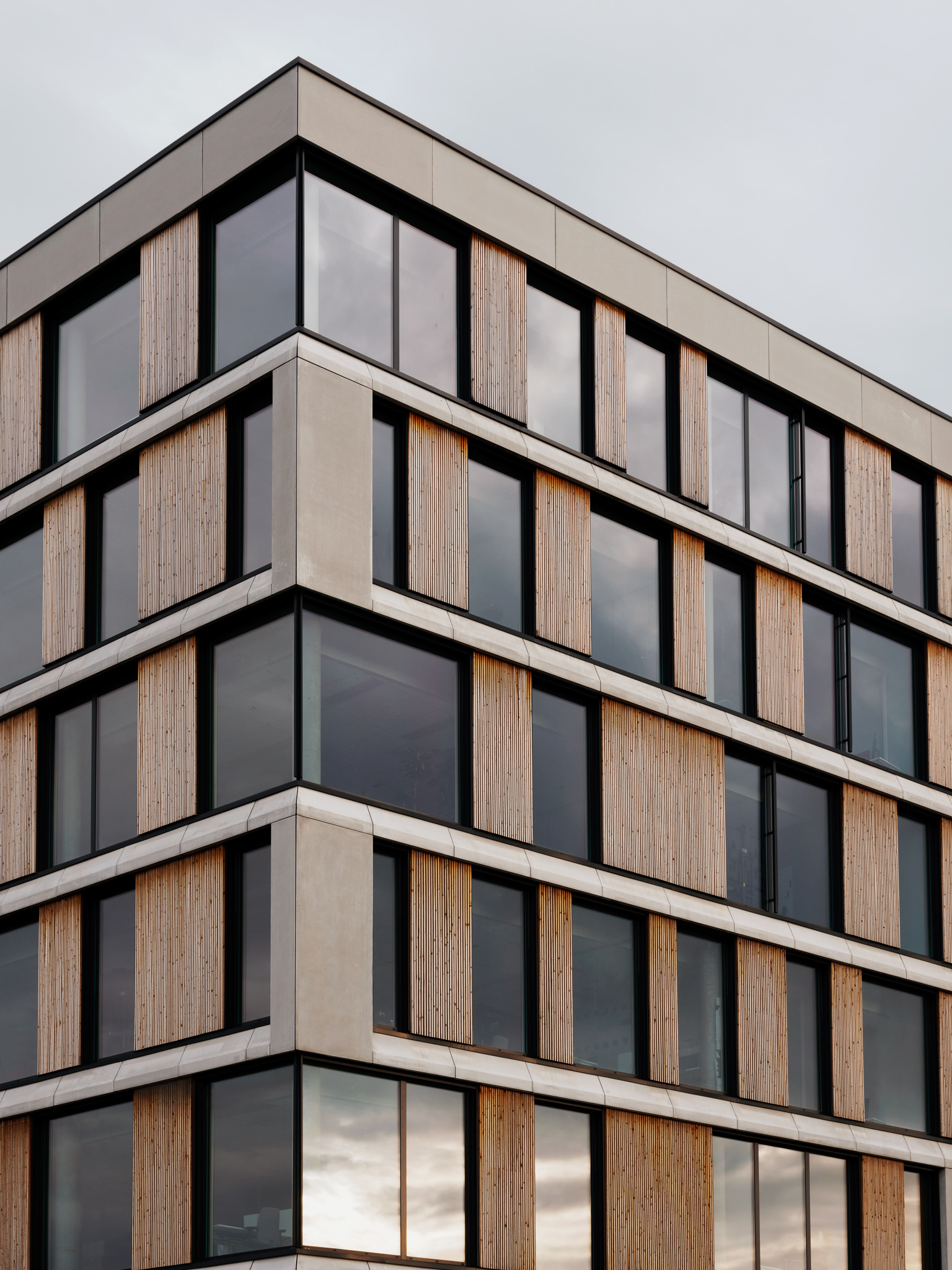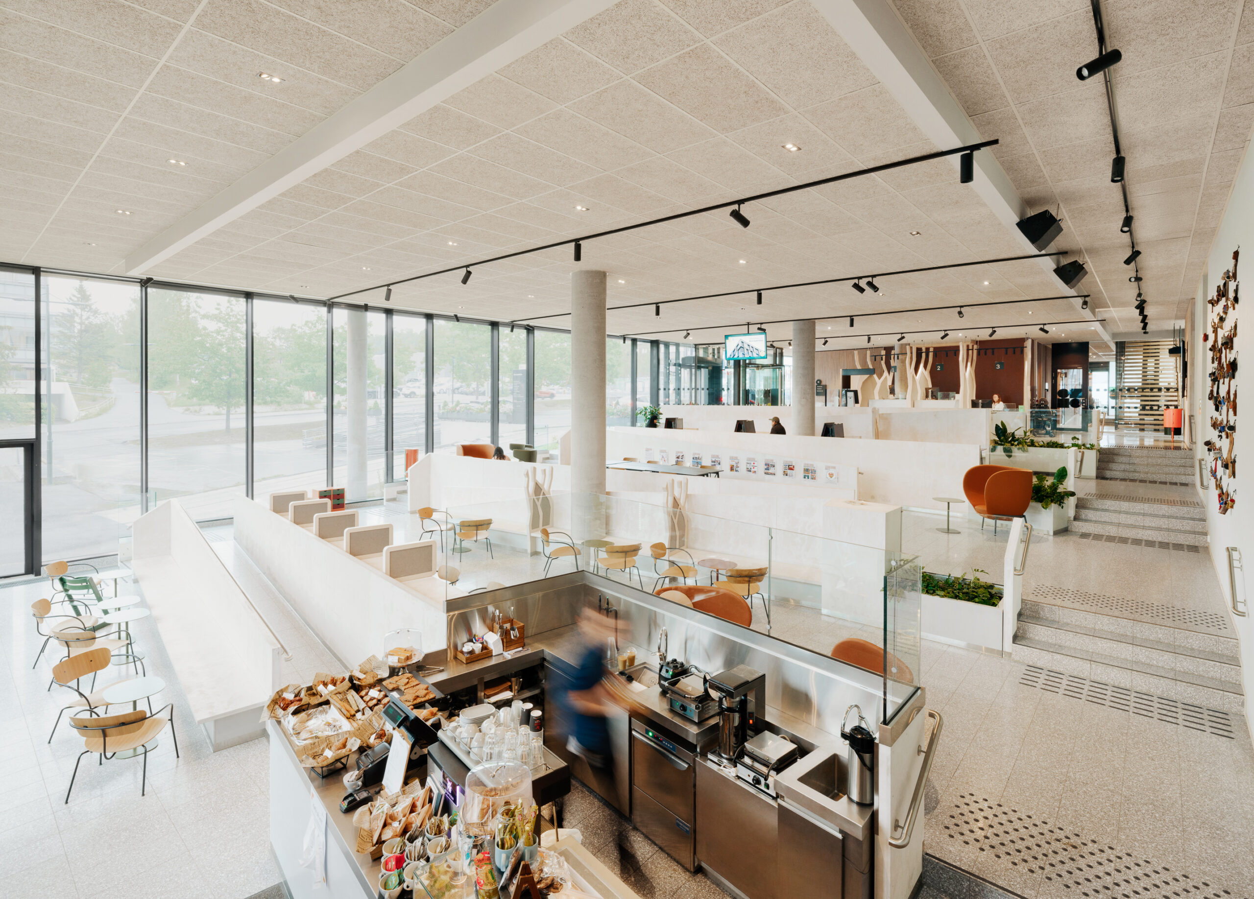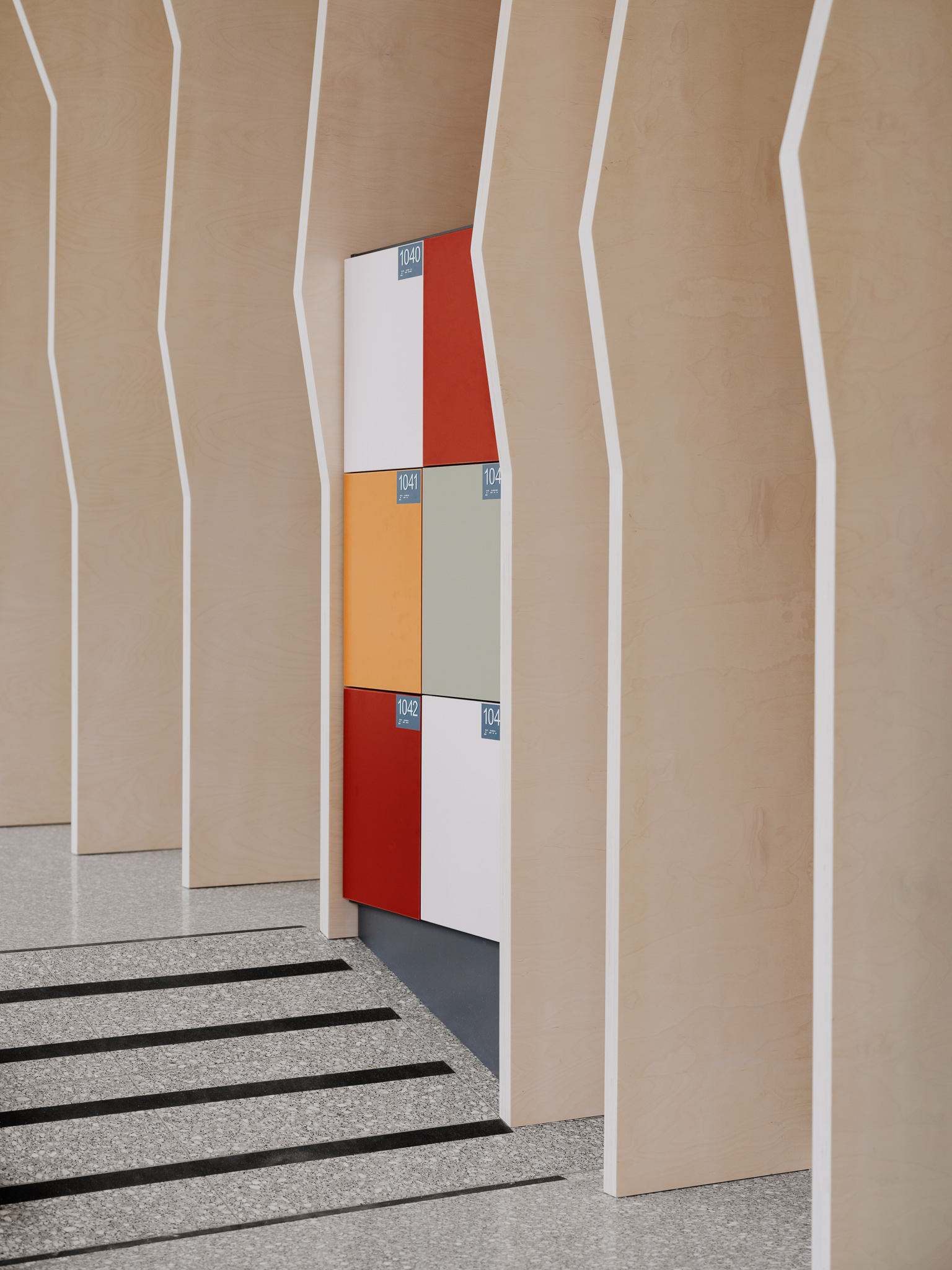 Bygget har en gjennomgående fargepalett som gjenspeiler områdets kulturelle mangfold, og materialene er valgt for å tåle vær og tid.