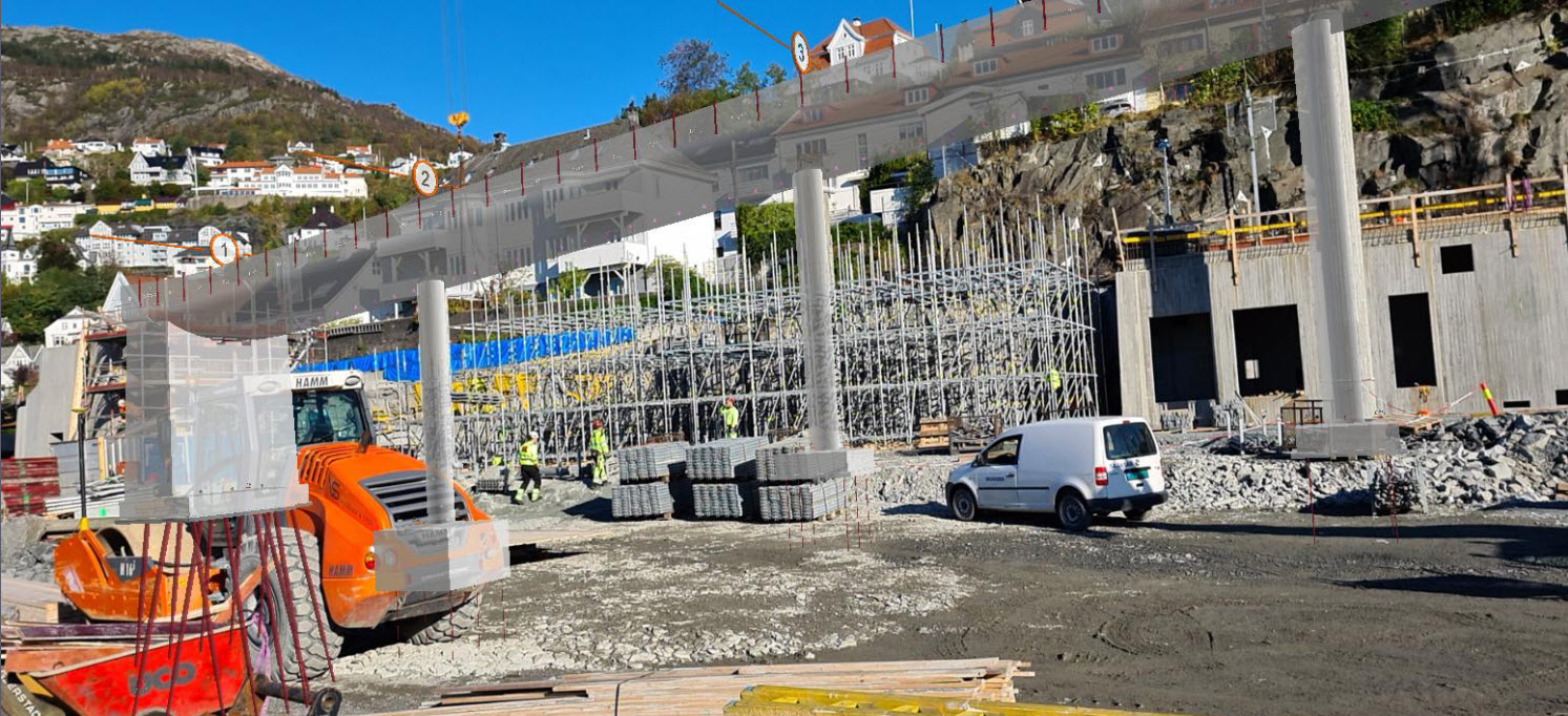 På byggeplass har den høye detaljgraden i våre georefererte BIM-modeller gjort at vi blant annet kan ta i bruk nettbrett på byggeplass og ny teknologi som AR (Augmented Reality) gjennom systemet Trimble Sitevision. Stikningsmannskap kan også hente all sin informasjon direkte fra modell. Både vi som rådgivere, i samråd med byggherre og utførende, har da hatt unik mulighet til å se konstruksjonene som er prosjektert, virtuelt ute i byggegropen. Dette har gitt oss fantastisk mulighet til tett planlegging av gjennomføringen til de forskjellige byggeprosjektene og god dialog med entreprenørene.