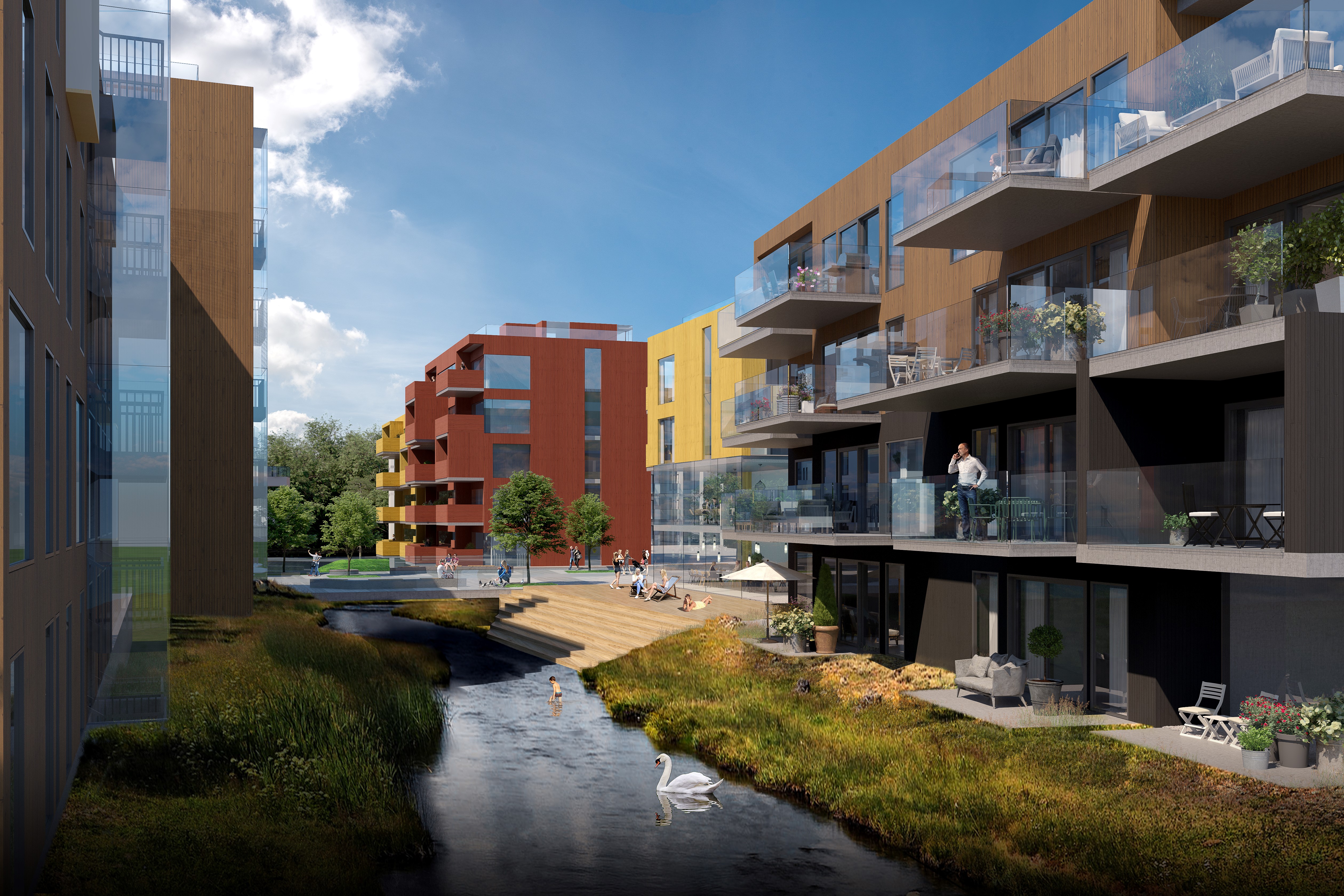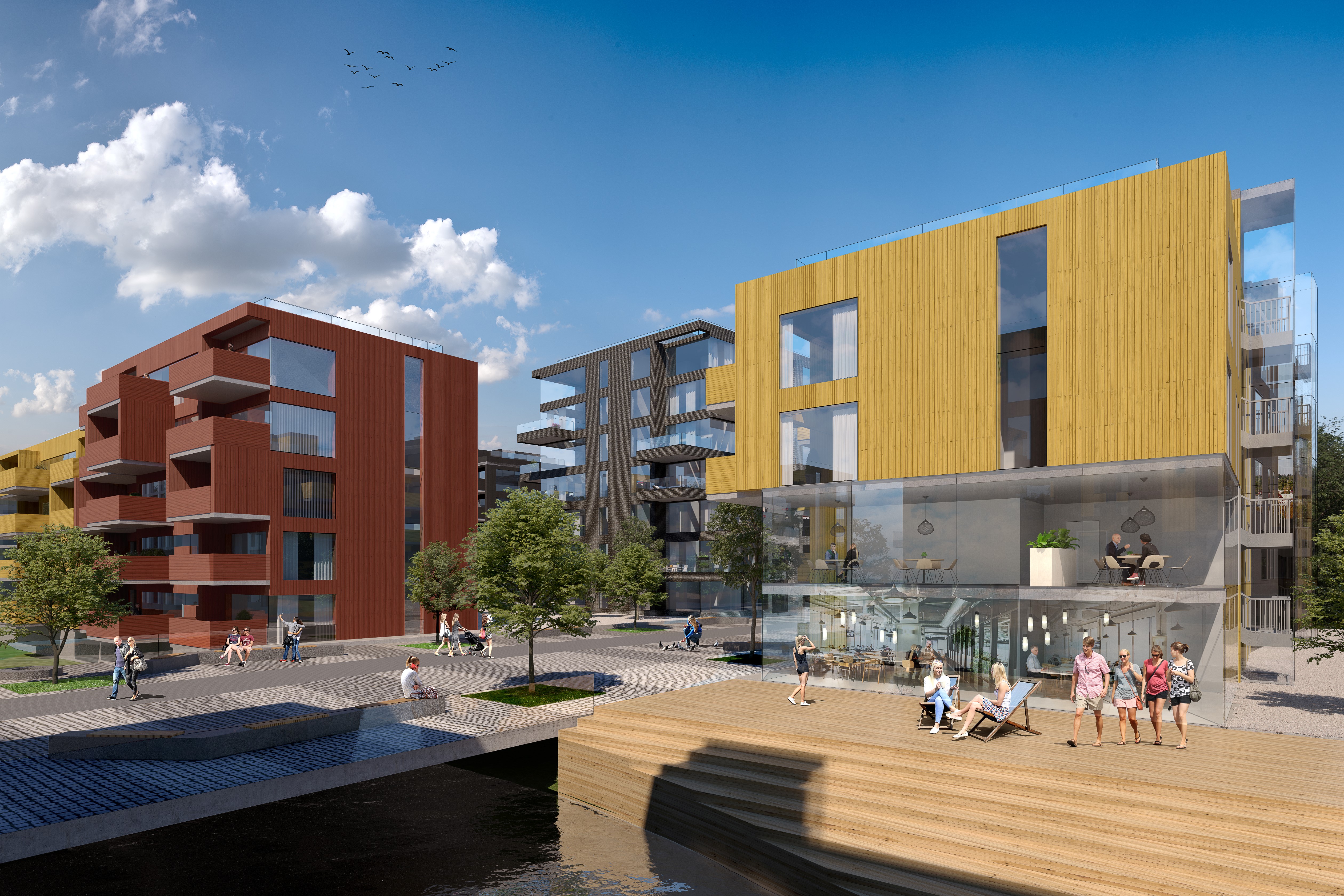 Området består av fire åpne kvartaler med en miks av blokker, punkthus og rekkehus i ulike høyder. Byggene kles i tegl og tre for å skape et varmt og tidløst uttrykk, mens den åpne strukturen gir gode sol- og utsiktsforhold. Felles tun og grøntområder danner trygge og trivelige møteplasser mellom boligene.