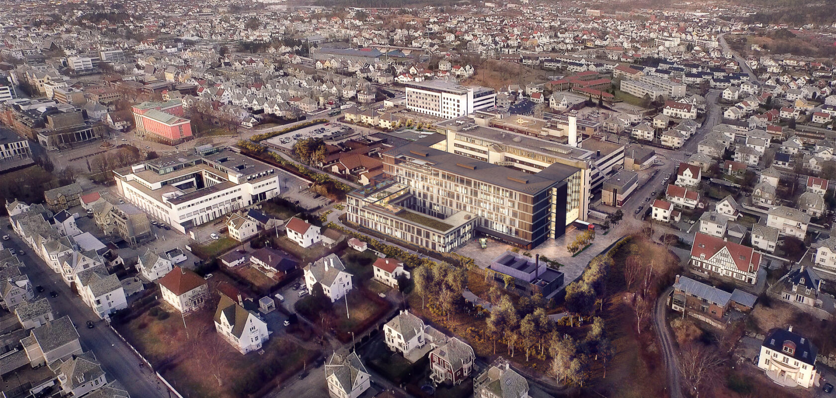 Haugesund Sjukehus utvides og bygges om for å håndtere forventet aktivitetsvekst, gi nye behandlingstilbud og mer funksjonelle løsninger for pasienter og ansatte. Første byggetrinn består av et nybygg på ca. 18.000 kvm med en behandlingsfløy for somatiske enheter og en lavere sidefløy for psykisk helsevern og rus. Nybygget skal romme tunge behandlingsfunksjoner som felles akuttmottak for somatikk og psykisk helsevern, operasjonsstuer, intensivenhet, observasjonspost, fødeavdeling og fullautomatisert laboratorier. For å opprettholde gode funksjonelle sammenhenger etter at nybygget er tatt i bruk skal det også foretas omrokkering og ombygging av ca. 6.000 kvm i eksisterende sykehus. Målet er å samlokalisere sengeposter og poliklinikker, samt å redusere grensene både mellom somatikk og psykisk helsevern og mellom medisin og kirurgi. Gjennom prosjektet får sykehuset større kapasitet og utvides i henhold til passivhusstandard og «grønt sykehus».