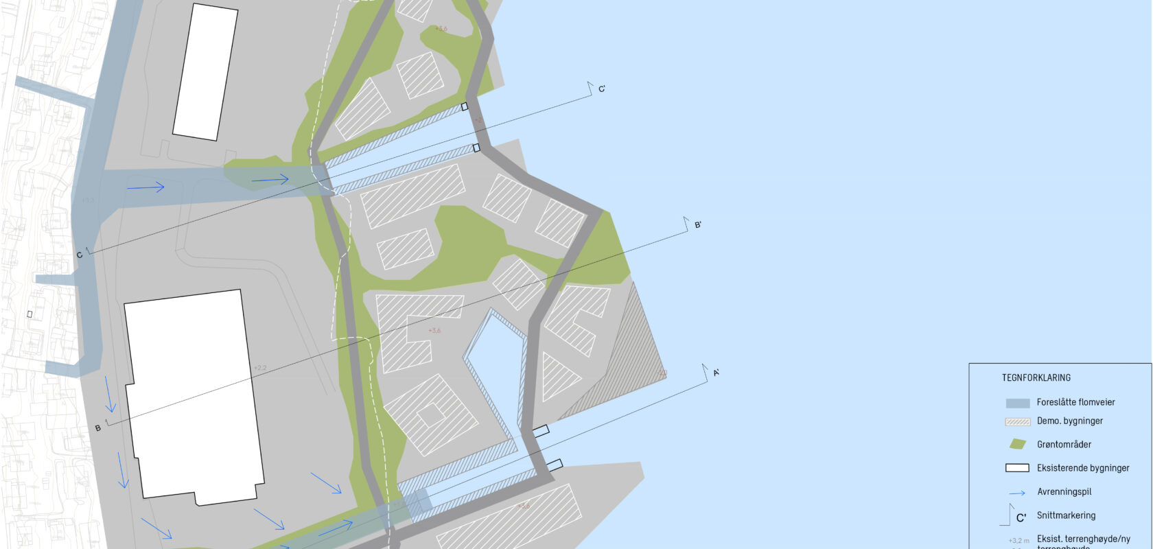 Tromsø kommune har store utfordringer når det kommer til stormflo og havnivåstigning. Sweco har utarbeidet et konsept med aktuelle tiltak som kan senke risikoen for skader knyttet til stormflo og havnivåstigning i et fremtidig klima. Konseptet består av prinsippskisser av løsninger for ulike områdetyper, samt diskusjon rundt løsningene. Disse prinsippene kan anvendes videre i hele Tromsø ved sikring av den sjønære bebyggelsen, eller ved nybygging ved sjøen. Viktige momenter i arbeidet har vært å ta hensyn til flomveier og overvannshåndtering innenfor flomvernet, sikre påbyggbarhet til å utvide tiltakene når havet fortsetter å stige, sikre en bærekraftig arealplanlegging i nye områder og foreslå aktuelle planmessige føringer for ny og eksisterende bebyggelse og byrom. Prosjektet resulterte i en rapport med anbefalinger for Tromsø, hvor prinsippskisser av løsninger for ulike typer områder ble vist.