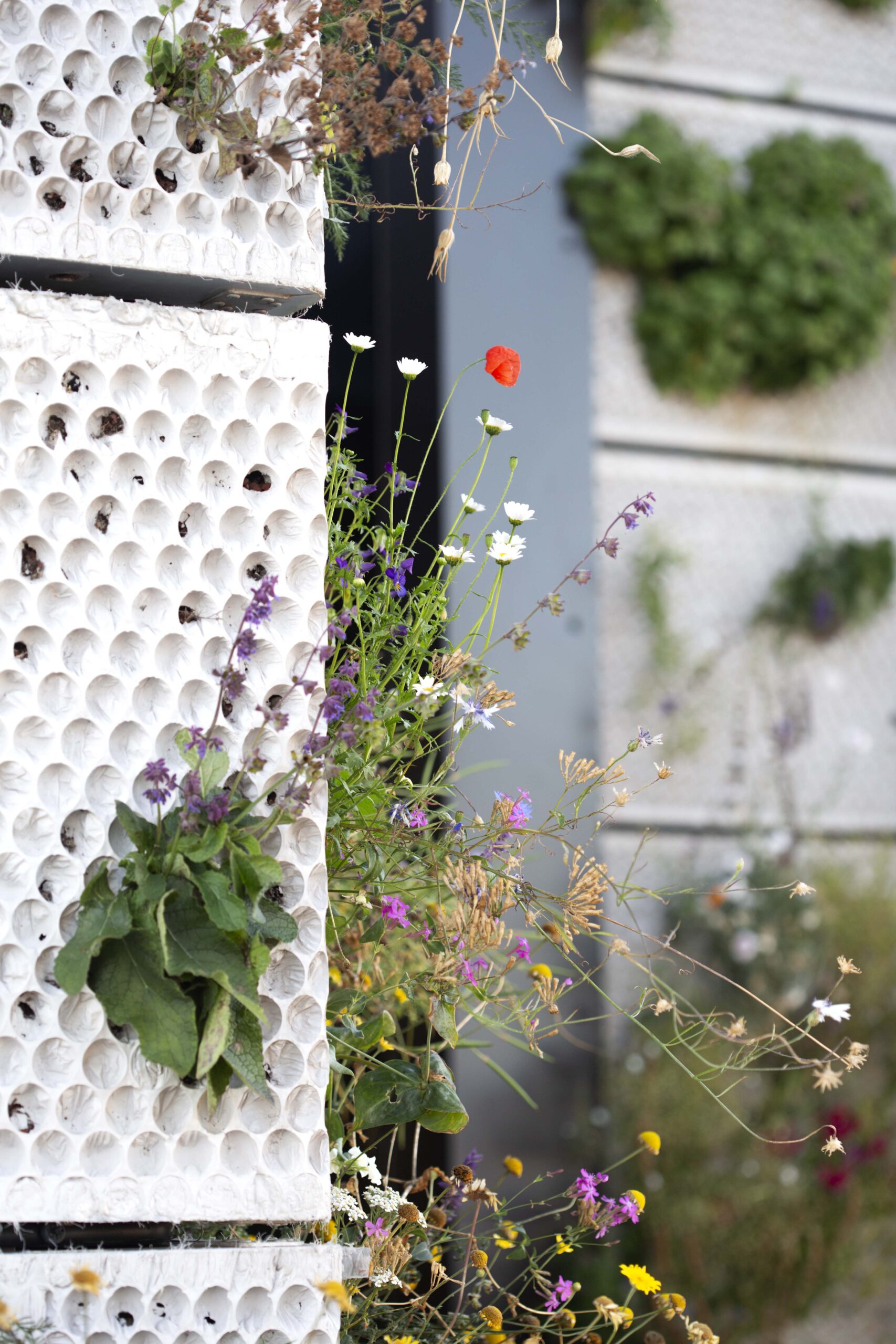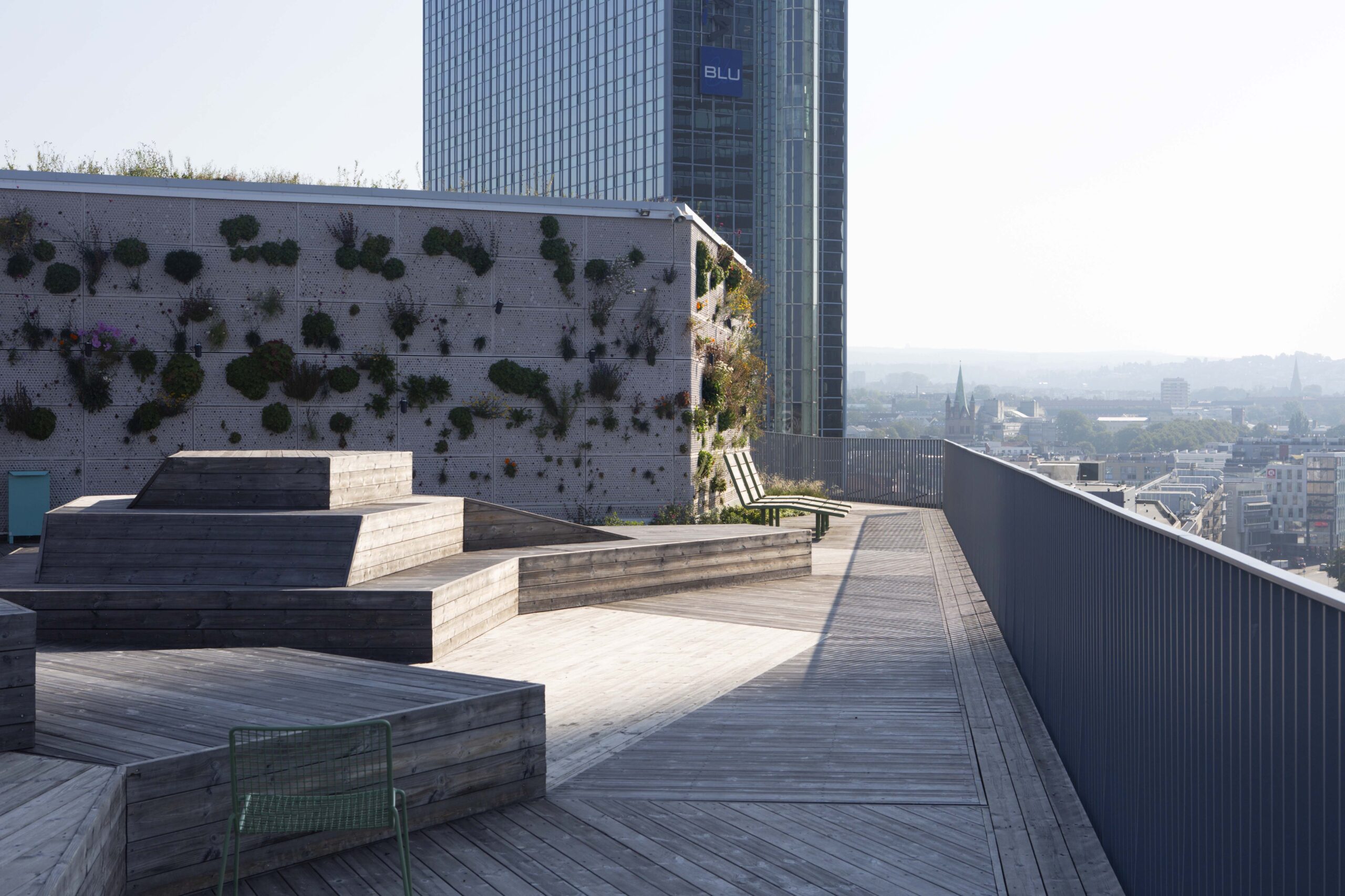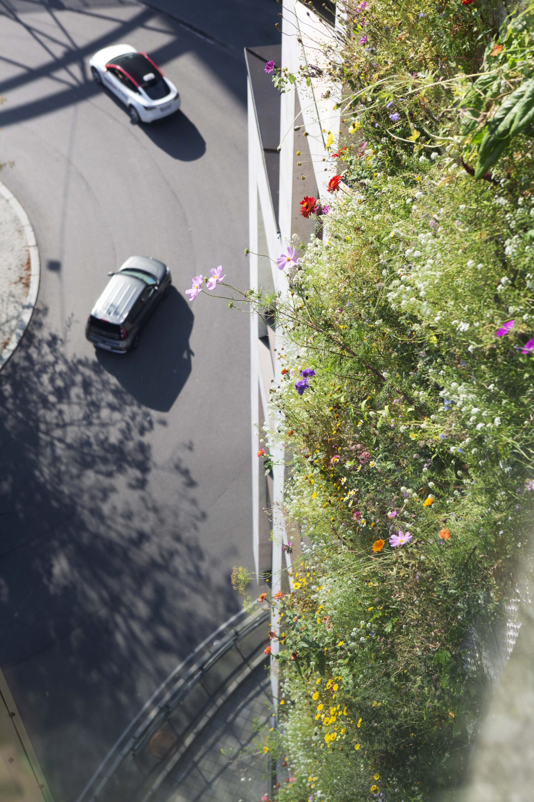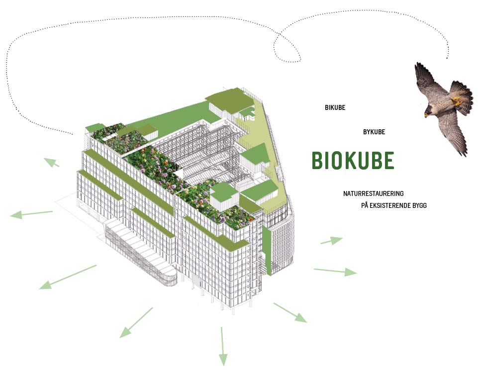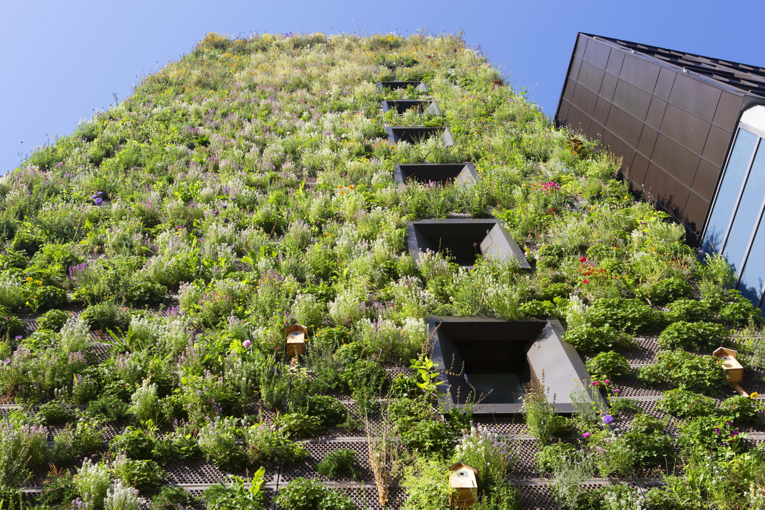 Grønne vegger og tak skaper en urban biotop som gir nytt liv til fasadene, reduserer varmeøyer og forbedrer luftkvaliteten. På takterrassen finnes variert vegetasjon, inspirert av Oslos naturlige landskap – fra skogbryn til fjordlandskap.